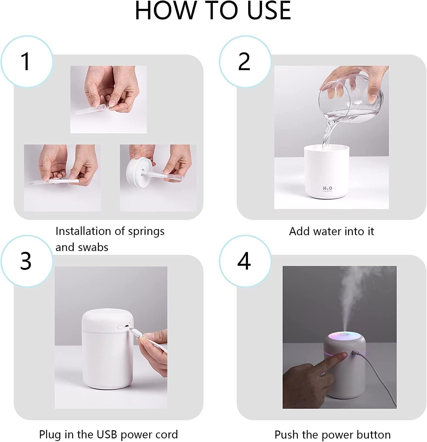 The PURE AROMA 300ml Essential Oil Diffuser & Humidifier offers effortless operation with a single-button smart touch control—adjust mist modes with one press and activate a soft, colorful night light or a soothing 7-color gradient with a long press. Crafted from BPA-free, eco-friendly materials, it ensures safety for babies and pets. Its compact, USB-powered design makes it ideal for travel, office, or small spaces, compatible with power banks and laptops for versatile use. For optimal performance, soak the cotton swab in water for 3-5 minutes before first use.