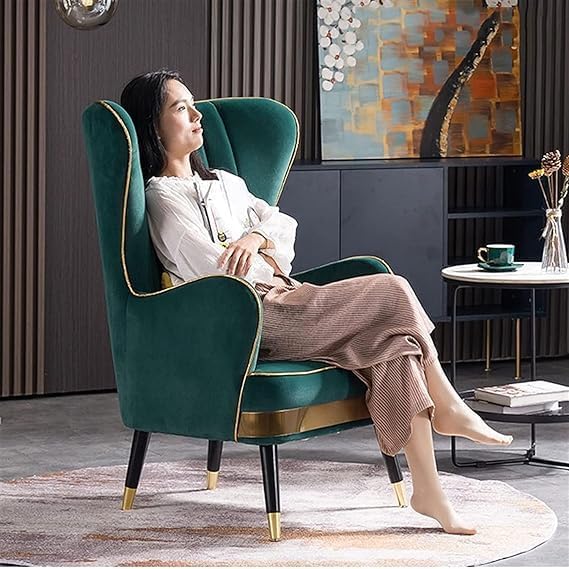 Add a touch of royalty to your home with the DUEX Furniture Emerald Green Velvet Wingback Chair with Ottoman. Crafted for comfort and styled for sophistication, this accent chair features a plush velvet upholstery in a stunning emerald green hue paired with gold detailing that exudes luxury. The high-back wing design not only enhances the visual appeal but also provides excellent back support. Whether you're creating a reading nook, upgrading your living room, or adding character to your bedroom, this single seater chair with a matching ottoman offers both style and function. Built with a sturdy wooden frame and durable golden-tipped legs, it?s made to last while turning heads. Indulge in everyday luxury with DUEX ? where comfort meets elegance.